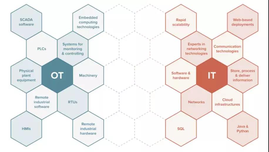 即使存在這些差異,而現(xiàn)在正好存在這樣的機(jī)會(huì) 讓 OT 和 IT 相互融合, 通過提升各自的能力,從而形成一種真正具有顛覆性的技術(shù)。在工業(yè) 3.0 的時(shí)代, OT 和 IT 保持著彼此相互的分割。而為了滿足今天的 數(shù)據(jù)密集型的環(huán)境和進(jìn)入工業(yè) 4.0,企業(yè)必須將 OT 和 IT 交匯融合匹配。