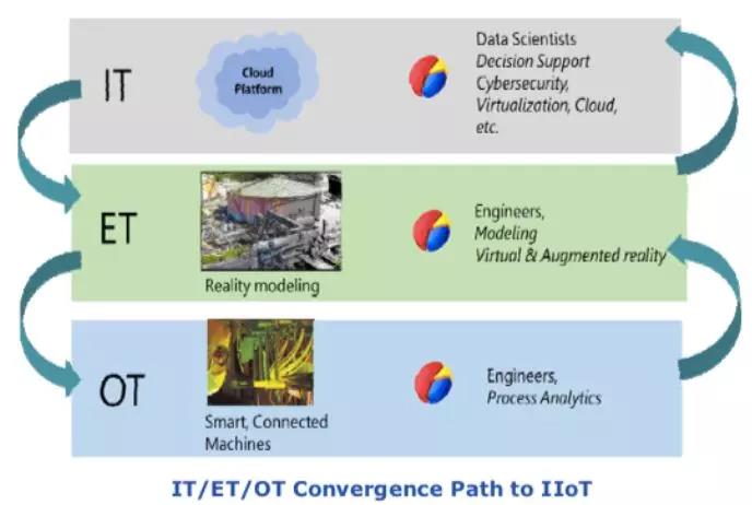 在制造業(yè)中由于智能設(shè)備的復(fù)雜度增加,相應(yīng)的軟件推動(dòng) IT 和 OT 緊密的集成,于是創(chuàng)造了在原有的知識(shí)上獲得新的洞察和觀察視角的機(jī)會(huì)。只是在 IIoT 的數(shù)字化數(shù)據(jù)環(huán)境中,將 ET 工程技術(shù)中那些為建立虛擬模型的技術(shù)納入 OT-IT 融合的進(jìn)程和交換中,這才能真正發(fā)揮作用。或許過去 ET 已經(jīng)被隱含在 OT-IT 的融合中,但是它的作用被低估了。在現(xiàn)在和將來的工作環(huán)境必須改變這種觀念,原因在于建模工具已成為管理決策或技術(shù)決策中的基礎(chǔ)和必備的環(huán)節(jié)。
