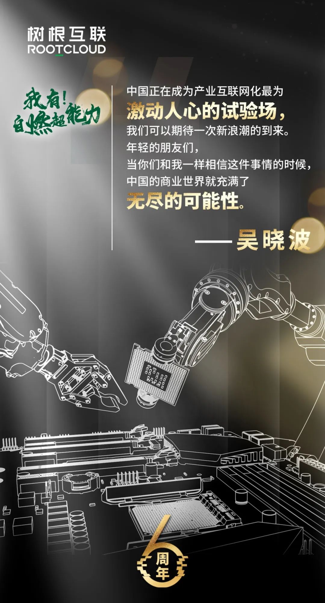 中國正在成為產業互聯網化最為激動人心的試驗場,我們可以期待一次新浪潮的到來。產業互聯網將引發硬件革命和應用性革命,因為中國是全球第一的制造大國,全球最大的消費市場。這次浪潮與我們的產業和消費息息相關,我們每個人都可能是革命者和被革命者。年輕的朋友們,當你們和我一樣相信這件事情的時候,中國的商業世界就充滿了無盡的可能性。——吳曉波