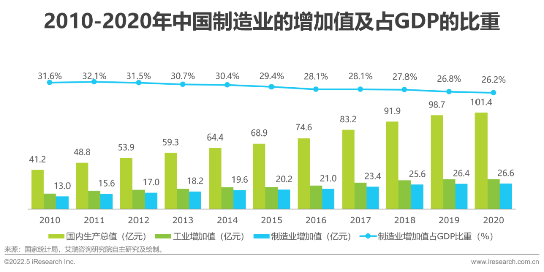 10年,中國規模以上制造業增加值的平均值為21萬億,占國內生產總值的比重的平均值為28.8%,對GDP的貢獻十分顯著