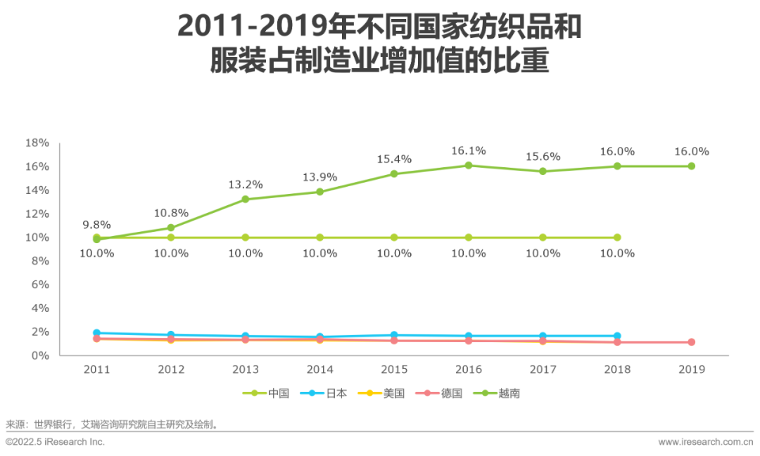 目前產業向成本更低的國家(如越南)轉移。以紡織品和服裝為例:據世界銀行公布的數據,目前中國的紡織品和服裝占制造業的比重基本維持在10%,但是越南則呈明顯上升趨勢,2019年,越南的紡織品和服裝占制造業的比重高達16%。結合歷史上前4次制造業轉移的兩個主要特點(向成本更低的國家或地區轉移、從技術相對低端的行業逐步滲透至相對高端的行業)來看,制造業遷移的苗頭已經顯現,國內制造業需要引起重視。