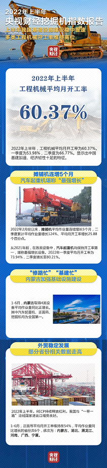 央視財經挖掘機指數:上半年工程機械平均月開工率60.37%!
