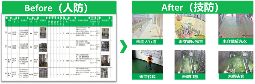 管理成本降低:通過(guò)算法告警,規(guī)范倉(cāng)庫(kù)工廠進(jìn)出人員活動(dòng),提高工廠管理效率(安全巡檢11小時(shí)/周→2.75小時(shí)/周,降低75%),保證工廠財(cái)物安全