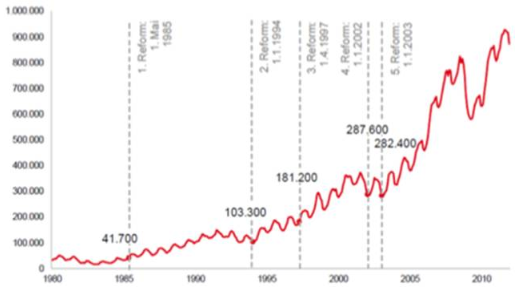 圖2 1990年-2010年德國就業市場