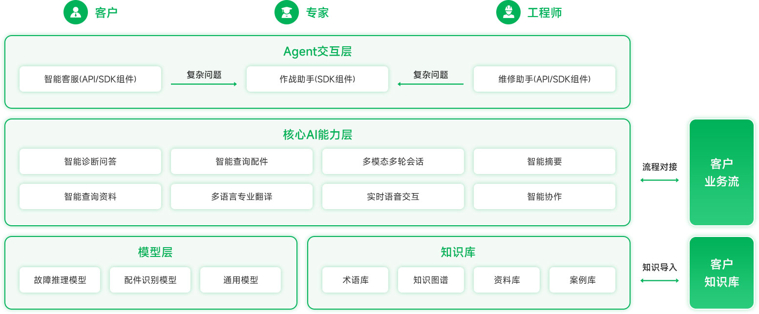 通過AI維修助手為現場工程師提供多維資料速查(原理圖、維修手冊、故障案例等)、基于企業維修知識庫提供故障現象到排故過程的全程AI交互指導