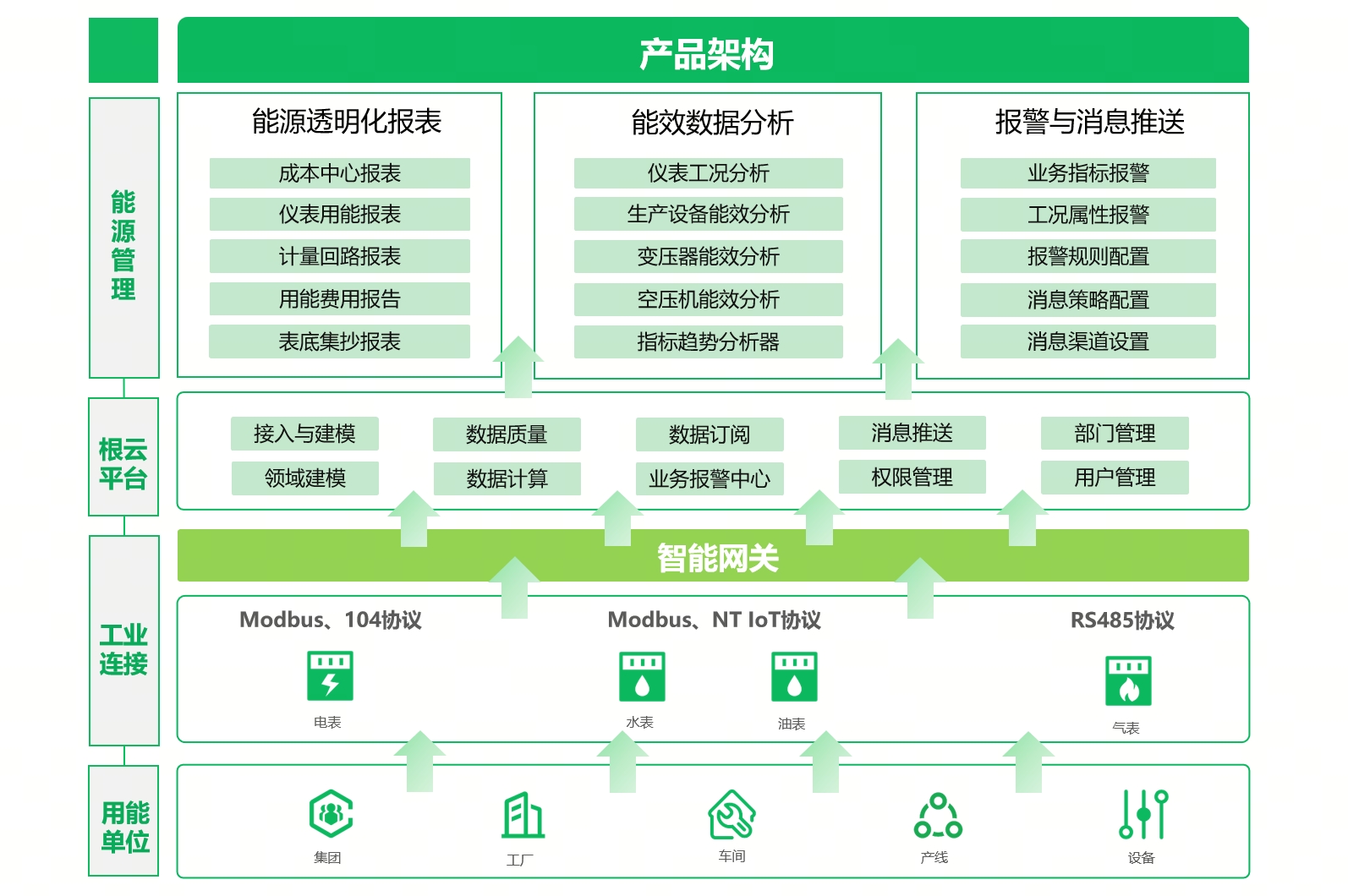 樹根科技具備從能源數據采集(軟硬)、能源監控、能耗分析、能效優化、能源設備維護的一體化解決方案能力,并在行業內經過了大量驗證,方案成熟度高